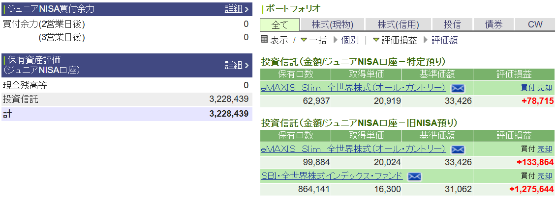 ジュニアNISA口座では新規の買付ができないため、成人まで保有を続けます。