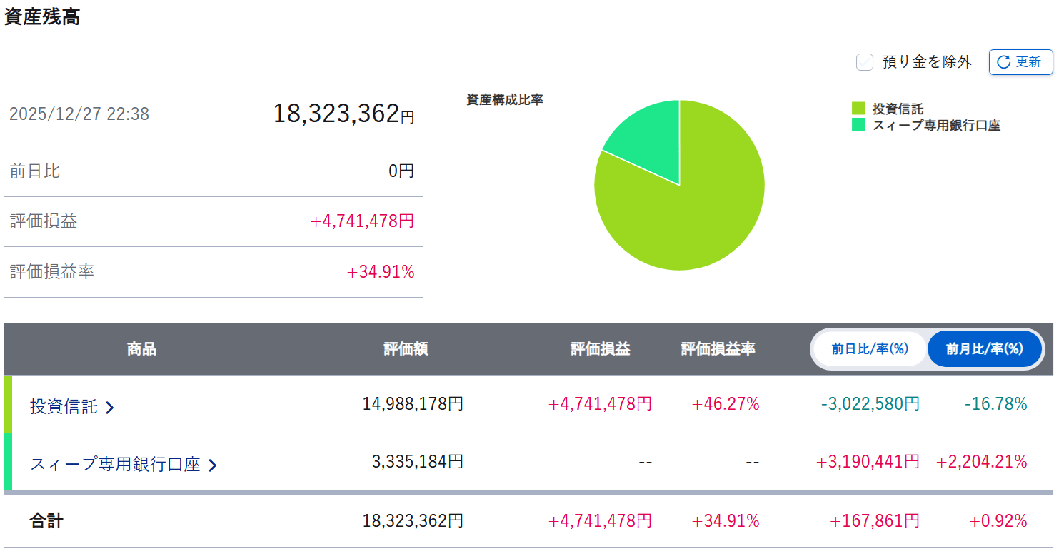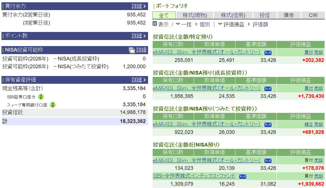 保有している運用資産をやりくりしながら、妻も2025年のNISA非課税枠(積立投資枠120万円、成長投資枠240万円)の投資をすべて完了しました。あわせて、2026年の成長投資枠についても、すでに注文を済ませています。