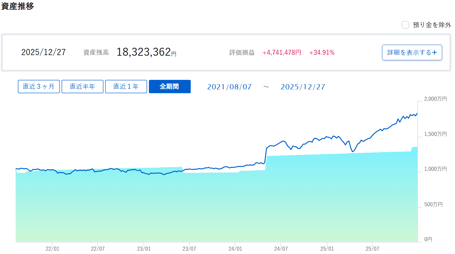 私自身、少し前までは「生前贈与なしで、自力で運用資産1,800万円に到達するのは難しいだろう」と考えていましたが、実際にはその水準をすでに超えてきています。